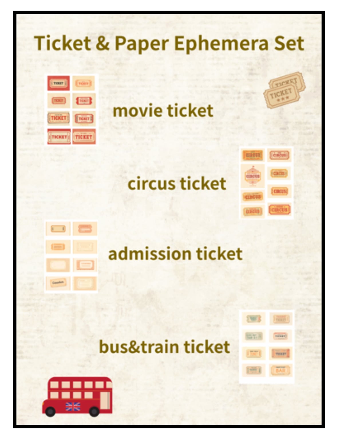 A vintage-style ticket ephemera set inspired by